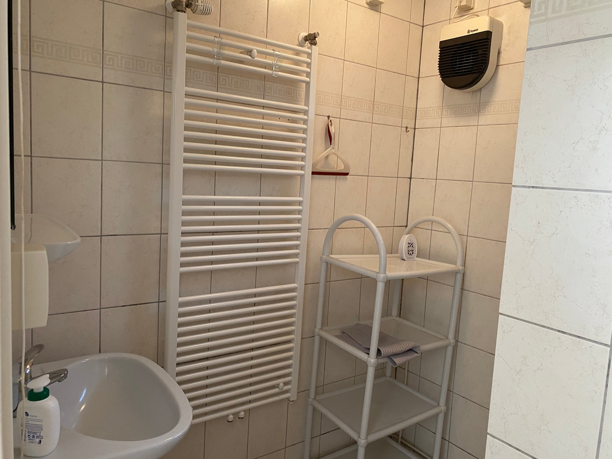 - badkamer met inloopdouche, toilet en vaste wastafel